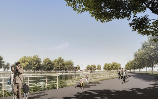 项目结合了潮白河沿岸的特色湿地景观来打造营地的特色,如在康养花园区采用的是“疏-密-疏”的景观规划设计手法来营造舒适自然的房车露营地环境。该区域中间有一个人工湖,湖的周边规划有健康步道,并且是分段式赤足步道,每个步道均设置有清洁区,铺设的有沙坑、石板、鹅卵等,游客可以自由选择不同的步道进行休闲锻炼。另外这里的旱溪景观植被丰富茂盛,是一个天然的森林氧吧;房车露营地还建设有花海,并且游客可以采摘,考虑到采摘游客的采摘活动会对露营区游客造成打扰,在规划时在此处设计有独立的进出口;露营地区域以自然景观景色为主,只是将乔木进行了相应的修剪。营地南侧结合潮白河湿地景观设置有景观绿岛和亲水平台;房车营地与帐篷营地以康养花园为中心,围绕阳光草坪排列,帐篷营地紧邻休闲景观区,打造了星空花海的浪漫景观。滨水的景观也包含有亲水平台,另外还有湿地小岛,高低起伏的亲水平台呈波浪形布局呈现良好的视觉效果,两侧规划着景观小品和木质休闲座椅,便于游客观景拍照。