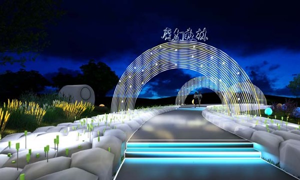 项目为了突出主题公园的特色冰雪旅游设计了特色的滑雪道,展示了东北的地域特色,对喜爱滑雪运动项目的群众及未体验过滑雪的游客来说吸引力巨大。整个区域设计了大量有关雪元素的内容,如灯光及各类装饰等,是一个充满特色的夜间主题空间,在夜晚还有烟花表演,带给游客震撼的体验。此外,设计者还设计了魔幻森林的探险步道,设计上运用了灯光与音乐等元素,还通过植物进行灯光造景,并且游客还能与灯光进行互动。游客通过声音大小来控制灯光明亮的变化。在魔幻森林的整体环境下让游客深入沉浸在此情此景中,充分与大自然接触。