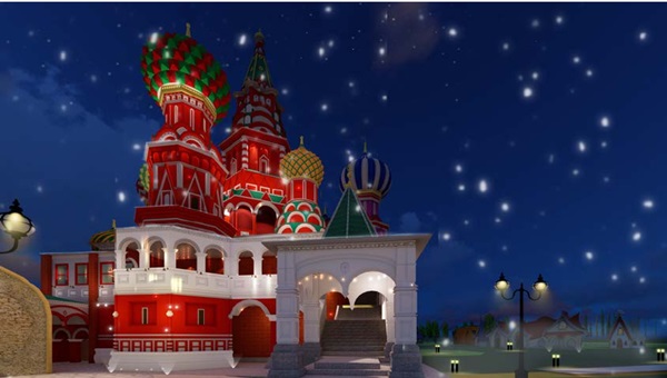 为了突出东北文化特色,设计师在东北亚风俗文化区规划设计了表演区域和影视基地。表演区会定时为游客表演有关朝鲜族的特色节目,并充分调动游客参与到演出中。在影视基地游客还能走进电影中,担任电影中的某个角色,体会电影故事,感受不一样的人生。同时这里还有动漫文化广场,游客可以体验具有东北特色主题的大灰狼、黑熊等主题的动漫内容。长白明珠主题公园除了有东北文化的特色外还有俄罗斯文化的体现。设计有俄罗斯风情的建筑和套娃景观。在俄罗斯文化主题区域建设了大量的俄罗斯建筑来营造主题氛围,设计上以俄罗斯莫斯科红场为灵感来源,利用投影科技技术将俄罗斯著名建筑展现在建筑立面上,并以石塑、大理石铺装和松柏、乔木等植物相配合来打造俄罗斯地域特色,营造强烈的沉浸感。并且在该区域还规划了多个具有俄罗斯特色的娱乐设施与项目,如哑剧、杂技、民族舞蹈等。