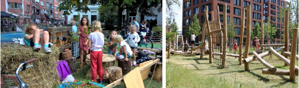 植入自然体验功能可以在空间中植入自然元素,如安特卫普市提出的“游乐谷”的概念正是为儿童创造与大自然亲密接触的机会。安特卫普市有意识地在公共空间里放置自然材料,如原木、攀爬网做成隧道等,这些自然材料激发了儿童的想象力,为儿童提供了有趣的场景和游戏的机会,让儿童亲近自然。在些国家对儿童游玩空间还有详细的规定,其中提到了关于自然元素的运用,强调儿童游玩空间应与自然紧密结合,鼓励运用自然材料对空间进行设计,并配备专业人员引导儿童对自然体验空间的运用。