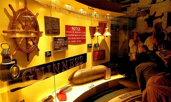 在景观规划设计上,健力士啤酒厂为了突出品牌特色,其指示路标设计采用了标志性的竖琴形象。此形象出自具有数百年历史的圣三一竖琴。1862年健力士改变竖琴元素的朝向,并将此为设计灵感来源。竖琴左下方的“ESTD.1759”字样,代表了健力士品牌的创始年份。健力士用简约的设计表达形式将竖琴标志设置在建筑立面和指示路牌上,与周边环境巧妙融合,简洁明了的起到导向和宣传作用。另外,体现出品牌历史的租赁合同成为健力士啤酒工业旅游的故事之一。1759年12月31日阿瑟·健力士以每年45英镑的租金,签署了为期 9000 年的啤酒厂租赁合同。在后来,健力士发展啤酒工业旅游时,将这份合同文书放置在啤酒展览馆一层大厅地面下的玻璃罩内,成为其工业旅游的一部分。健力士将合约布置在展览馆供游客参观,生动直接的展示了品牌发展历程,能够让游客更加直观清晰地了解健力士的品牌文化。在沉浸式体验的场景设计上,设计师在健力士啤酒展览馆设计上利用现代科技展现形式,为游客提供沉浸式参观体验,将啤酒花到大麦再到流水生产灌装的黑啤酿造、生产的过程进行了详尽的讲述。此外,还规划布置了各时期健力士使用过的啤酒桶、各时期运输啤酒的轮船和飞机模型等主题展览。