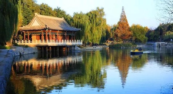 设计师在竞秀公园设计中采取植物造景和园林景观相结合的方式,将公园的自然状态与色彩优势相结合搭配,打造出公园的历史文化古韵。围绕着自然、古典、人文主题,根据建筑、植物、水体、道路的特点融入文化意蕴进行植物景观、水体景观、建筑景观、道路景观的色彩设计。