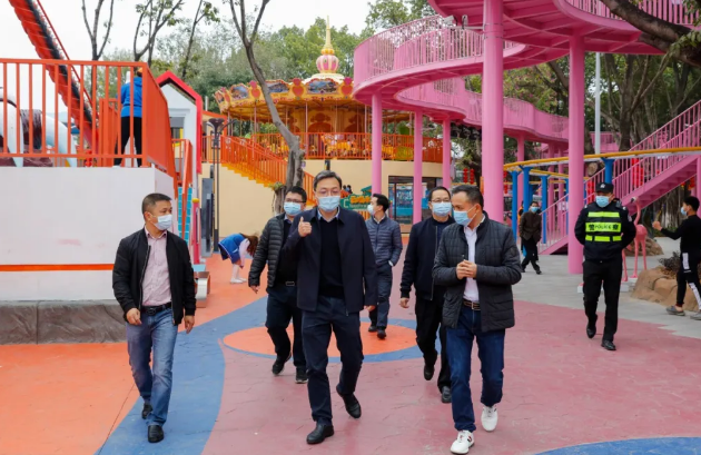 蒋副市长按照园区防控防疫要求,进行了测温、验码和佩戴口罩,检查商业街区、游玩设施等疫情防控重点环节,详细了解园区防控措施落实、运营人员核酸检测、园区开放式出入口围蔽、防疫物资储备等疫情防控工作情况,并要求园区进行加强对设施设备的安全检查,确保游客游玩安全和防控防疫到位。