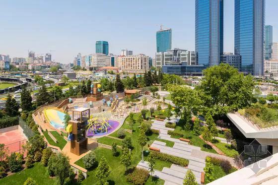 该亲子乐园位于土耳其伊斯坦布尔,占地1600平方米,其主要通过营造探索和冒险的场景来加强互动体验感。乐园从入口到内部,地势不断升高,并形成不同的功能区域。在入口处可以见到起伏较缓的小山坡,可供年龄较小的孩子行走或攀爬,并在此区域上设计了蹦床、吊床、轮盘和滑梯等娱乐设施,空间趣味性十足。在亲子乐园的中心处,地形由起伏的山坡变成落差较大的峡谷,该区域亲子乐园设计的大型家庭滑梯可供孩子与家长一起玩耍,为亲子家庭创造专属共享空间。 在色彩应用上,场地外部色彩鲜艳,内部以砖色为主,来突显冒险氛围,同时在场地周围布置桌椅,家长可在此休憩,陪伴孩子一起度过快乐时光。