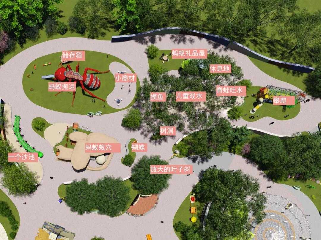 “蚂蚁王国”亲子乐园设计利用地形优势与无动力力学结合,将运动融入自然,构建一个能给儿童带来浓厚兴趣、丰富感知、无限想象、启迪心智、寓教于乐的启智型“无动力”游乐空间。
