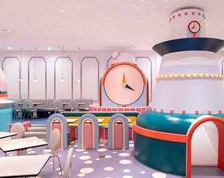 亲子乐园设计应以鲜明活泼的色调为主!儿童对色彩具有很强的感知能力,同时对于色彩鲜明的东西能形成很好的直观记忆以及强烈的情绪反应,这是儿童对色彩一种情绪表达的需要和欲望。因此室内亲子乐园规划在色彩方面能吸引儿童和家长的目光,就是成功的第一步。试想一下,一个由绿、黄两种色度较高的颜色大包围,内部配上以红、粉、黄、蓝等以浅色为主的系列色的室内亲子乐园,整体看上去,是不是给人一种清新自然的氛围?相信这样的室内亲子乐园不仅能让儿童驻足,也能激发儿童和家长的兴趣。