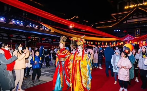上阳宫文化公园作为皇家园林,其每栋建筑都有特定的功能与意义。然而作为现代城市公园,需要满足的是当代居民和城市的需求。因此设计者根据实际需求,将原有的建筑功能升级,进行价值重构设计。如偏殿七宝阁在武则天历史时期主要用于推行佛教,而如今则是文化宣传重地,展现唐文化创意产品及文化收藏品等。甘露殿原是宴请使臣宾客的地方,如今开放有音乐餐吧、小吃等,还有着宴席的功能。观风殿则是在一层不断播放有关历史短片,传播文化,同时还有举办唐式婚礼等场景演绎。原来作为接待奏计及外官觐见的上阳宫中客省院的建筑,则升级为唐文化的主题客栈,为游客提供住宿,深度体验唐文化。另外还有些建筑被赋予了展陈功能,作为博物馆之用,有些又作为特色活动的场所或进行情景演绎,又或是居民品茶或消费等场所。设计者通过对原有建筑的功能升级,将现代城市生活融入其中,为上阳宫文化公园赋予了新时代的意义,具备了当代城市公园的时代特征。