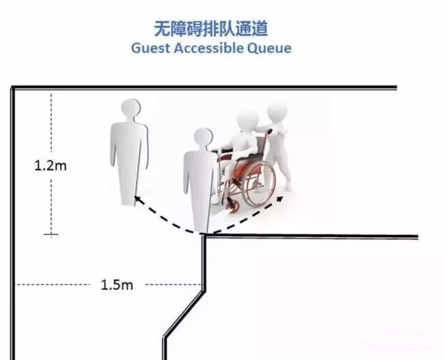 比如排队区无障碍通道的转角处理
