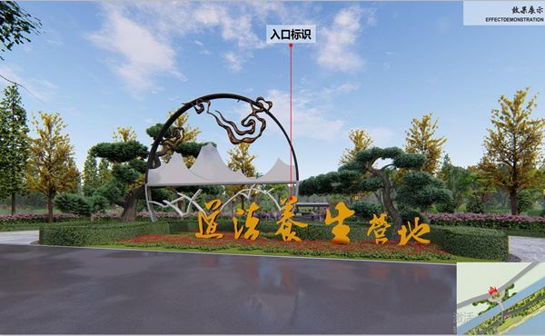 在游客进入营地的大门的入口景观区结合绿植对大门进行了造型,并在此设置了停车场,方便游客的泊车。而次入口大门的标识设计者则将山、水、云、道的设计元素融入其中,让游客感受到中式、禅意、山水的营地文化氛围。广场活动区域是自定义的自由活动区域,可以开展各种类型,各种主题的特色活动。活动区域设计中运用了白色的地砖与周围草地区隔开来,旁边还设置了木板道与木头隔断,这样不同材质带来了不同的视觉效果,也是一道美景。露营区在设计上充分考虑了游客的私密性,并能提供各种类型的露营需求,不仅满足团体需求还能满足家庭需求。营地内可以开展多种活动,如烧烤等。在草坪区还有对道教文化的学习和培养,还有休闲的茶餐厅,该区域可以根据年轻人的需求改变活动方式。草坪广场上还规划了舞台,游客可以充分感受现场的氛围。同时活动广场南侧的草坪也能供游客们开展活动。