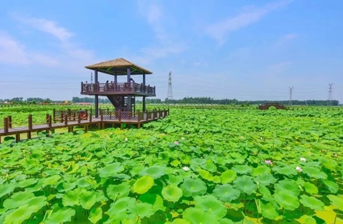 当时闻庄村发展主要以第一产业与第三产业为主。其中第一产业以种植莲藕、果树、水果及虾养殖等为主。其中种植莲藕是当地特色,种植面积有1500亩,有40多年的历史,并拥有自己的品牌。而第三产业则是以主要芙蓉园里的采摘园、农家乐等为主。因闻庄村缺乏第二产业的规划,对整个乡村的产业构建及发展不利,因而在对乡村规划设计过程中,规划单位弥补了闻庄村缺乏第二产业规划的不足,着重第二产业的规划布局,最终使闻庄村第一、第二、第三产业互相促进共荣,产业间形成了良好的循环,共同推动及促进乡村的经济可持续发展,为建设美丽乡村奠定了基础。另外,产业的规划设计对芙蓉园的发展起到了重要的作用,芙蓉园是闻庄村重要的旅游景区,全年客流量可达十二万人次。因此,在规划设计时把芙蓉园作为乡村内部环境及产业规划发展方面的突破口进行重点规划设计。例如对入口处进行扩容,改善入口空间窄小、不够突出的劣势,并在芙蓉园园的主道路上增加了廊架,美化环境,吸引游客停留,在栈道上增加遮阳设施及休闲亭子,为游客驱赶炎热,增加游客游玩时间,更具有人性化。通过整体优化,让游客不仅能在这里区享受美食及休憩,同时还能参观莲藕的加工制作工艺,加深游客对乡村生活的体验,而另一方面,充分调动了村民生产生活的积极性,提高了乡村集体和村民的收入。