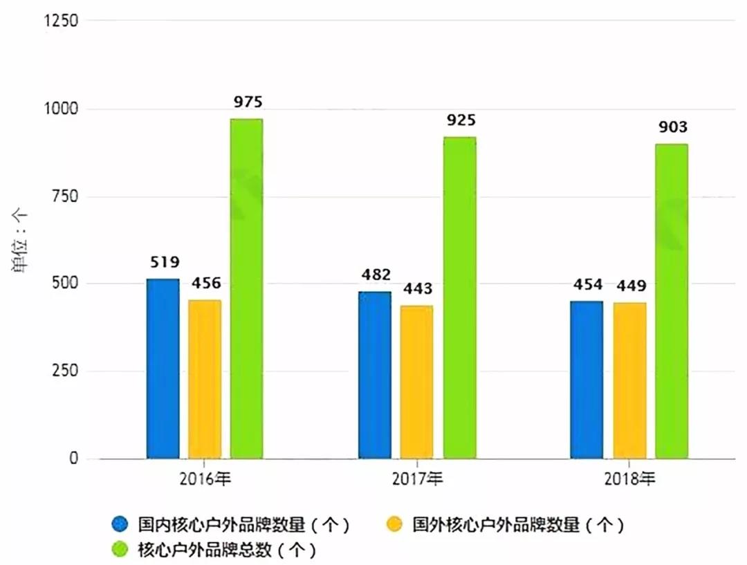 与此同时,2018年核心户外品牌总数同比减少22个,其中国内核心户外品牌数量同比减少了28个,降至454个;国外核心户外品牌同比增长6个,增至449个。行业发展遇阻,民族品牌的竞争力相较国外品牌也有明显的差距,中国户外运动公园行业走到了不破不立的关键路口,新冠疫情突如其来,祸兮福倚,历史总是惊人地相似,中国户外运动公园行业要在危机中闯出生机,实现产业转型和消费升级。