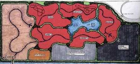 该特定示例的功能布局基本上遵循许多近期主题乐园常见的“循环”方法。 在这种布局中,主题区域环绕着一个中央湖泊,通常作为夜间眼镜的位置。 另一个常见的布局是迪斯尼乐园首次推广的“中心和辐射”方法。 它有一个中央视觉图标(如城堡)作为其中心,主题区域从这个中心扇形展开。 使用其他布局,没有一个明显优于其他布局。 独特的站点特征会影响最佳功能布局的选择,以及其他设计方面。