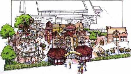 随着项目总体设计愿景的形成,也可以准备更详细的项目较小部分(如个别主题区域)。 下面为拉斯维加斯城市广场娱乐中心的特写渲染示例。 此图片显示了2007年开业的当地知名儿童乐园区。