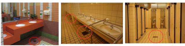 大地漏:在洗手台下,及厕位通道区设置大排水口。而非常规地漏。从而方便日后冲水清洁及积水快速流干,避免堵塞。