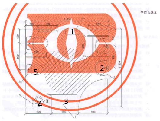 √位置宜靠近公共厕所入口,方便行动不便者进入,轮椅回转半径不小于1.5m;