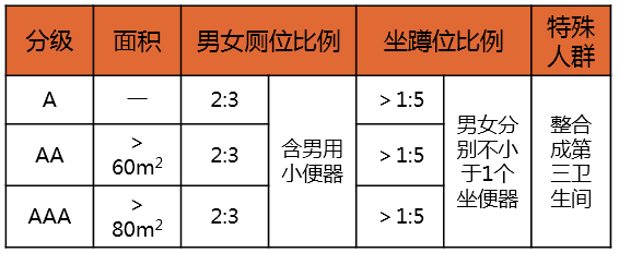 详见《旅游厕所质量等级的划分与评定》GB/T 18973-2016